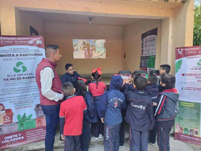 Uruapan, Michoacán.- Luego del periodo vacacional de Semana Santa, el Gobierno Municipal de Uruapan, a través del Departamento de Educación Ambiental de la Secretaría de Desarrollo Urbano y Medio Ambiente, reactivó las actividades para sensibilizar a los estudiantes de las diferentes escuelas sobre la importancia de separar la basura y los beneficios que esta acción produce en el medioambiente.