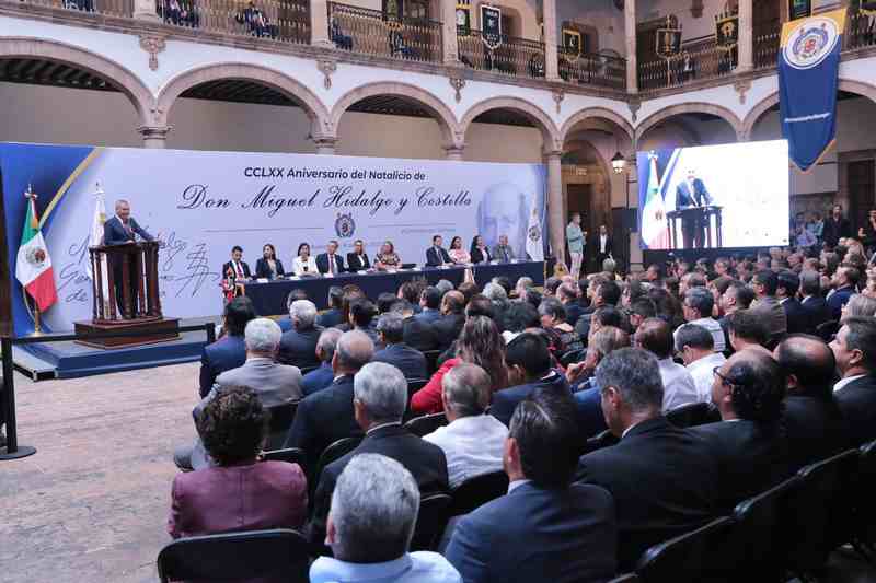 Durante el acto del CCLXX Aniversario del Natalicio de Miguel Hidalgo y Costilla, realizado en el Colegio de San Nicolás, el mandatario refrendó su compromiso como nicolaita y destacó que se garantizará el acceso a la educación y la generación del conocimiento.