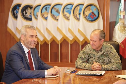 Ciudad de México, 24 de mayo de 2023.-El gobernador Alfredo Ramírez Bedolla y el secretario de Marina, almirante José Rafael Ojeda Durán, refrendaron coordinación para continuar acciones de desarrollo y seguridad en el Puerto de Lázaro Cárdenas.