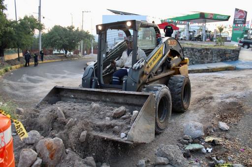 Morelia, Mich; 30 de mayo del 2023.-El Ayuntamiento de Morelia desalojó a vecinos inconformes quienes mantenían desde hace un mes barricadas y bloqueada la calle Encuentro de Maravatío por La Huerta para luego llenar diversas calles de escombro como manifestación en contra de la construcción de la empresa gasera.