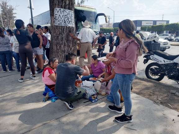 Al exterior, familias enteras acudieron al evento; el pollito rostizado invadió con su olor a las cercanías del recinto. Bajando de camiones del transporte público y de autobuses fue evidente el acarreo de gente. Guías para toda la gente que vino, resaltó.