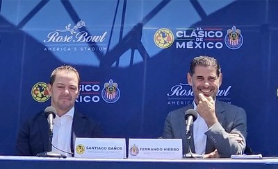 Santiago Baños, Presidente Deportivo del Club América, Fernando Hierro, Director Deportivo de las Chivas de Guadalajara, y Steve Madison, Concejal de Pasadena, estuvieron presentes hoy en el legendario estadio de Pasadena para el anuncio oficial que incluyó a la prensa, celebridades e invitados especiales.