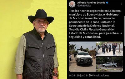 A continuación, el tweet publicado: “Tras los hechos registrados en La Ruana, municipio de Buenavista, el Gobierno de Michoacán mantiene presencia permanente en la zona junto con la Secretaría de la Defensa Nacional, Guardia Nacional y Fiscalía General del Estado de Michoacán, para garantizar la seguridad y estabilidad”.
