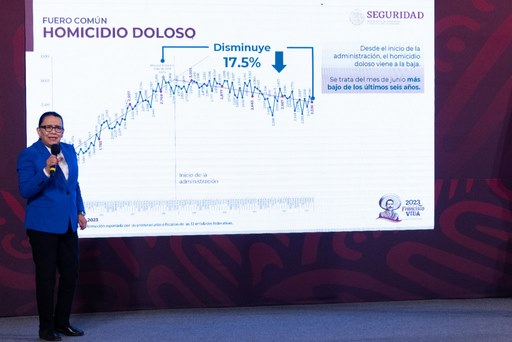 Morelia, Michoacán.-El Gobierno de México informó que hay una clara tendencia a la baja en el delito de homicidios dolosos en la entidad, logrando que en junio hubiera 41 por ciento menos que el mes anterior.