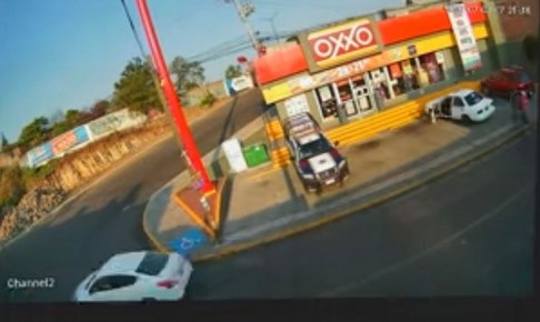 Al revisarlo al igual que sus pertenencias se dan cuentan que es el mismo sujeto que venía robando los OXXOS, por lo que se le detiene y se traslada a la Fiscalía por portación de arma de fuego.