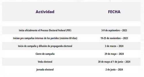 Otro conjunto de fechas tiene que ver con las propia organización del proceso electoral, que implica la instalación de los Consejos Locales el 1 de Noviembre de 2023; la instalación de los Consejos Distritales del 1 de diciembre de 2023; la designación de los supervisores electorales y capacitadores asistentes electorales por los Consejos Distritales, el 13 de enero de 2024; la Primera Insaculación el 6 de febrero de 2024; la aprobación por parte de los Consejos Distritales de casillas extraordinarias y especiales, el 14 de marzo de 2024; la aprobación por los Consejos Distritales de las casillas básicas y contiguas, el 25 de marzo de 2024; la segunda insaculación el 6 de marzo de 2024, entre los más relevantes.