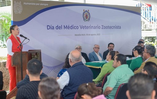 Morelia, Michoacán, a 18 de agosto de 2023.- “Las y los médicos veterinarios zootecnistas que son formados en nuestra institución cuentan con un gran perfil del cual nosotros estamos orgullosamente representados”, indicó la rectora de la Universidad Michoacana de San Nicolás de Hidalgo (UMSNH), Yarabí Ávila González, durante la conmemoración del Día del Médico Veterinario Zootecnista.