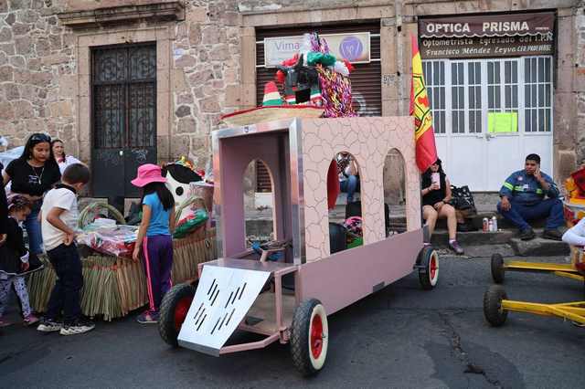 La competencia de carros locos atrajo a una multitud entusiasta que se congregó a lo largo de la avenida Morelos Norte en el Barrio del Carmen para presenciar la destreza y la imaginación de los participantes. A las 9:00 am en punto, la pista de carros locos se abrió para los valientes equipos que habían trabajado arduamente en la creación de carros únicos y extravagantes, inspirados en el Patrominio Cultural moreliano.