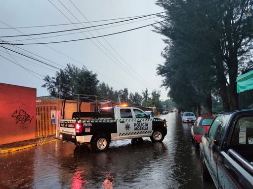Morelia, Mich; 31 de agosto del 2023.-Derivado de las lluvias que se registraron en diversos puntos de Morelia está tarde, el Gobierno Municipal, a través de la Coordinación de Protección Civil y Bomberos, activó un protocolo de emergencia para atender las zonas en donde se presentaron incidentes.