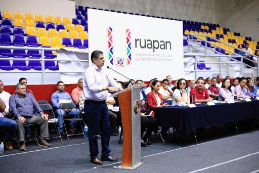 Durante la sesión mensual del Consejo de Desarrollo Municipal, el presidente de Uruapan, Nacho Campos, sostuvo que el municipio sigue transformándose gracias al respaldo del presidente de la República, Andrés Manuel López Obrador, y del gobernador, Alfredo Ramírez Bedolla.