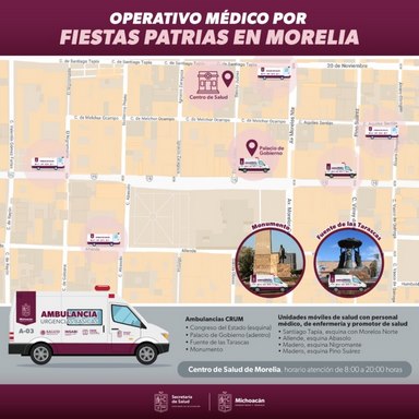 Las cuatro ambulancias serán operadas por médicos, paramédicos y personal de enfermería del Centro Regulador de Urgencias Médicas (CRUM), y estarán ubicadas en la avenida Madero y la calle Virrey de Mendoza, en la esquina del Congreso del Estado; en el interior de Palacio de Gobierno; en Las Tarascas; y en el monumento a Lázaro Cárdenas.