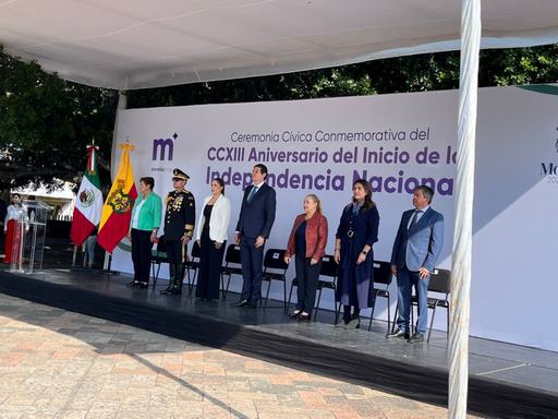 Morelia, Mich; 16 de septiembre del 2023.-Autoridades de los tres órganos de Gobierno fueron partícipes de la Ceremonia Conmemorativa del CCXIII Aniversario del Inicio de la Independencia Nacional.