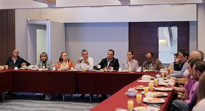 Morelia, Michoacán, 25 de octubre de 2023.- En reunión con hoteleros, el secretario estatal de Finanzas y Administración, Luis Navarro, destacó la importancia de que en Michoacán prevalezcan la estabilidad social, el orden y la paz, con el objetivo de impulsar las inversiones, atraer el turismo y contribuir al engrandecimiento de la entidad a través de la generación de fuentes laborales e impuestos.