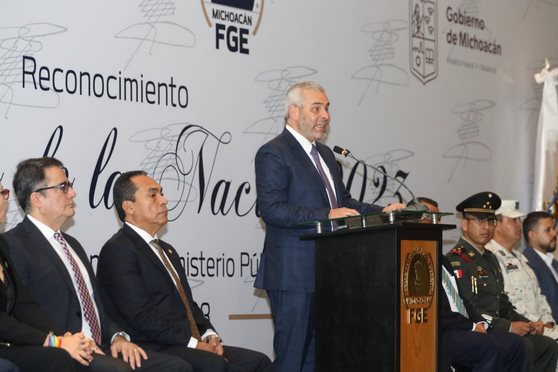 Morelia, Michoacán, 25 de octubre de 2023.- El gobernador Alfredo Ramírez Bedolla, ratificó que vendrá una reforma al Poder Judicial, pero seguirán existiendo los jueces y el Ministerio Público, esto, durante la ceremonia de entrega de reconocimientos a agentes del Ministerio Público de la Fiscalía General del Estado (FGE).