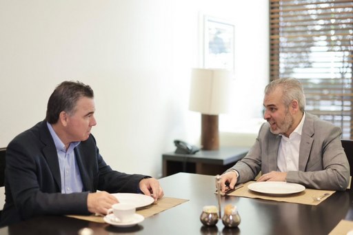 Morelia, Michoacán, 29 de octubre de 2023.- El gobernador Alfredo Ramírez Bedolla presentó al director general de ArcelorMittal México, Víctor Cairo, un proyecto de saneamiento y aprovechamiento de aguas residuales para uso industrial con la construcción y operación de tres plantas de tratamiento en Lázaro Cárdenas.
