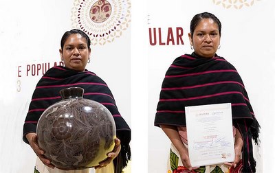 La maestra artesana fue reconocida por la ejecución de su técnica en la rama de alfarería bruñida, al presentar una torre de siete cántaros en color café y negro, dignos de asombro al observar los detalles minuciosos realizados con sus propias manos.