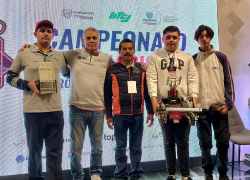 Juárez, Chihuahua, 9 de diciembre de 2023.- Estudiantes del Colegio se Estudios Científicos y Tecnológicos del Estado de Michoacán (Cecytem) se coronaron como campeones en el área de Construcción, en el Segundo Campeonato Internacional de Robótica, celebrado en Ciudad Juárez, Chihuahua.