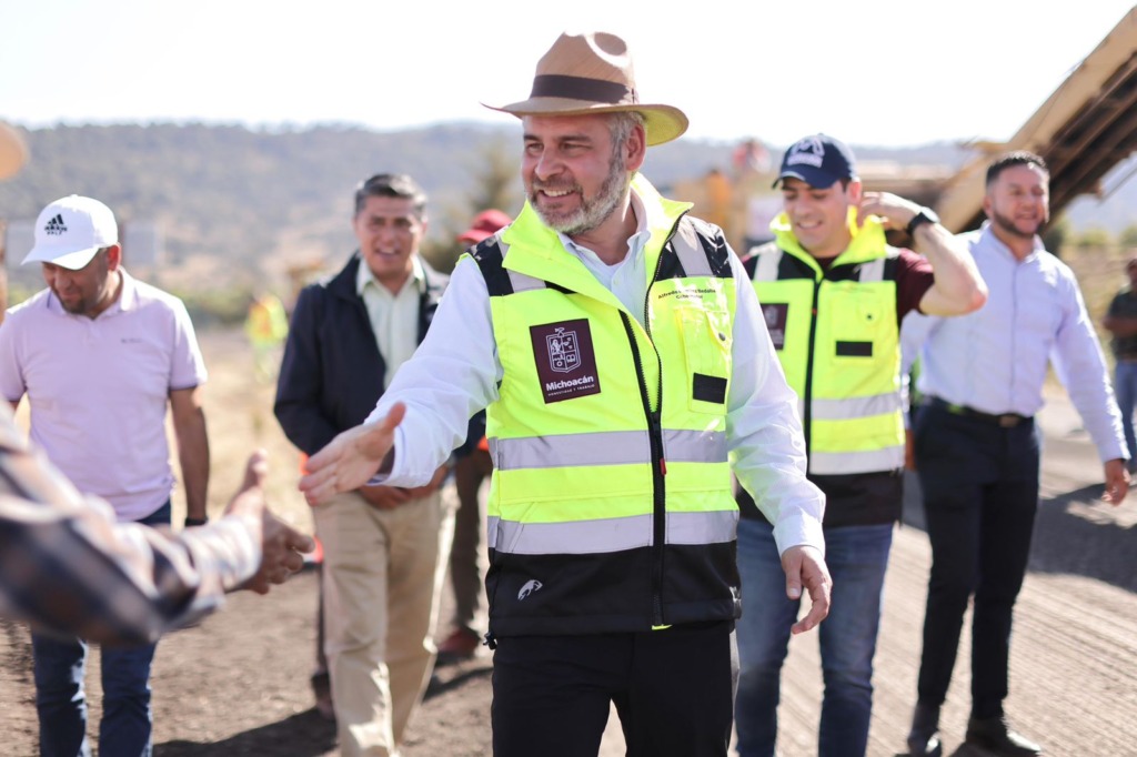Epitacio Huerta, Michoacán, 23 de febrero de 2024.-El gobernador Alfredo Ramírez Bedolla supervisó los trabajos de rehabilitación y conservación carretera de 57 kilómetros del tramo Tlalpujahua-Contepec-Epitacio Huerta.