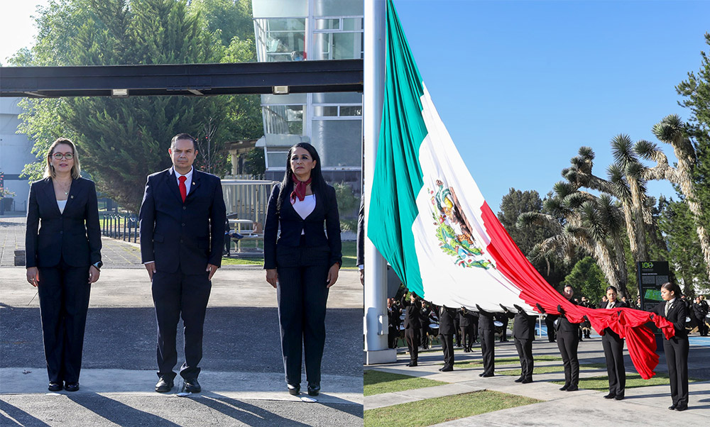Flanqueada por las y los integrantes del Gabinete Legal, la rectora izó la Bandera Nacional en la plaza Nicolaita del Arte y la Cultura, ubicada en Ciudad Universitaria y posteriormente se rindieron honores al Lábaro Patrio.