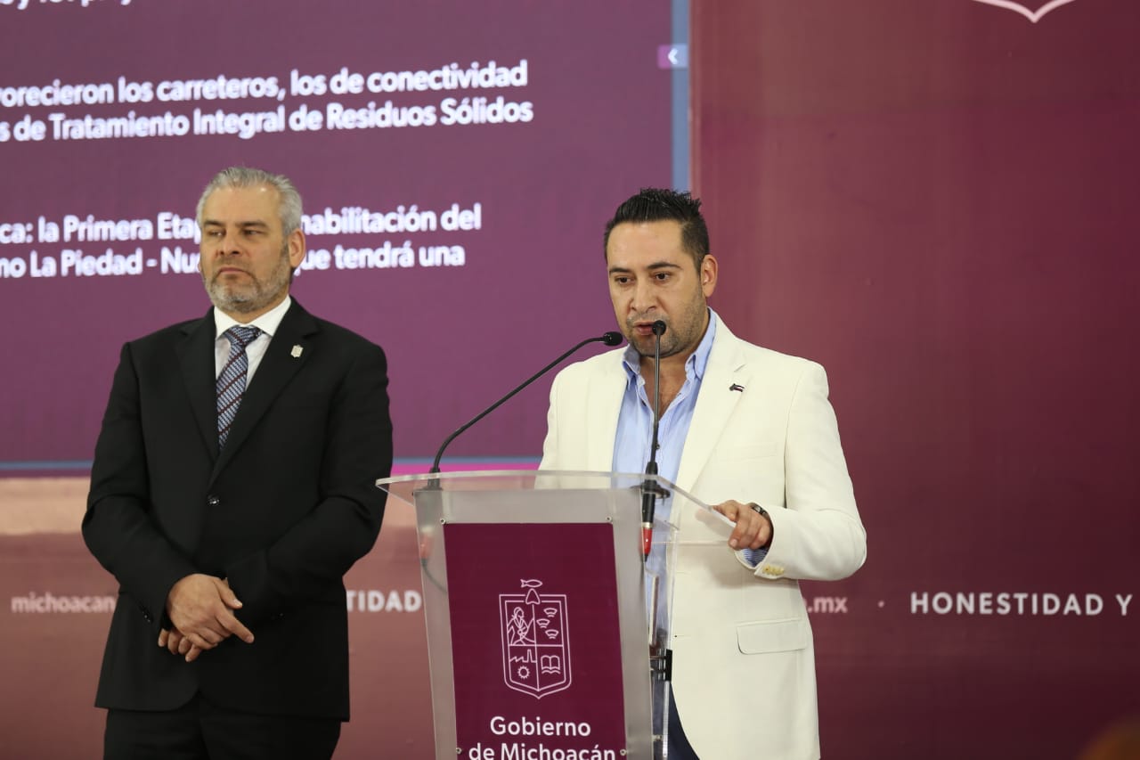 Refirió que destaca la modernización del libramiento de Los Reyes donde se invertirán 58 millones de pesos; la ampliación del cuerpo carretero al aeropuerto donde se destinarán 40 millones, y dos CITIRS intermunicipales que se ubicarán en Lázaro Cárdenas y en Sahuayo.