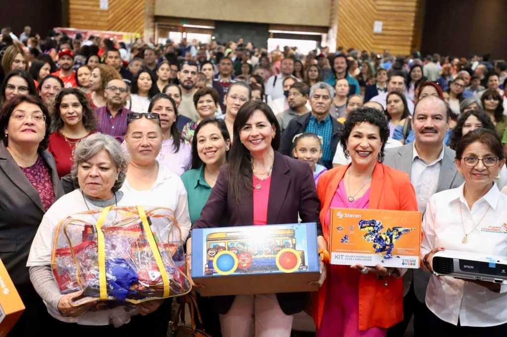 Asimismo, reconoció la labor de los docentes y destacó que uno de los ejes centrales es la justicia laboral para ellos. “Muchas veces fungen no sólo como profesores frente al aula, sino también como portadores de cariño”, dijo la jefa del sector educativo en la entrega del material que llegará a más de 430 escuelas.