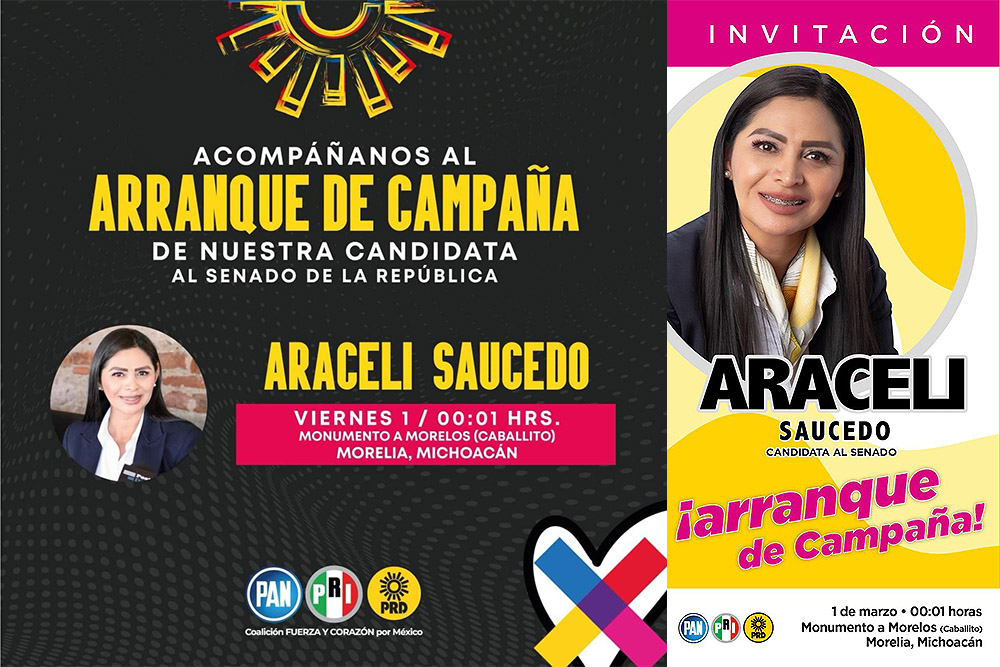 Araceli Saucedo es abanderada por la coalición Fuerza y Corazón por México, que integran los partidos PAN, PRI y PRD, y será acompañada en la fórmula por “Beto” Lucatero.