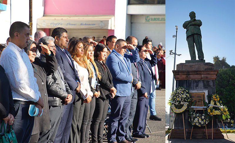 Uruapan, Michoacán.-Con un acto cívico y colocación de ofrenda floral, el Gobierno Municipal conmemoró el 86 aniversario de la expropiación petrolera, en el monumento a Lázaro Cárdenas de esta ciudad, donde autoridades municipales encabezadas por el presidente de Uruapan, Nacho Campos, rindieron homenaje a uno de los grandes logros de México.
