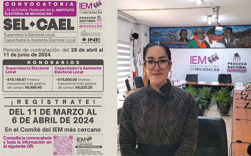Morelia, Michoacán.-En el marco del proceso electoral en desarrolló, el Instituto Electoral de Michoacán habrá de contratar a mil 913 personas, mismas que habrán de ganar un salario mensual de 15 a 19 mil pesos.