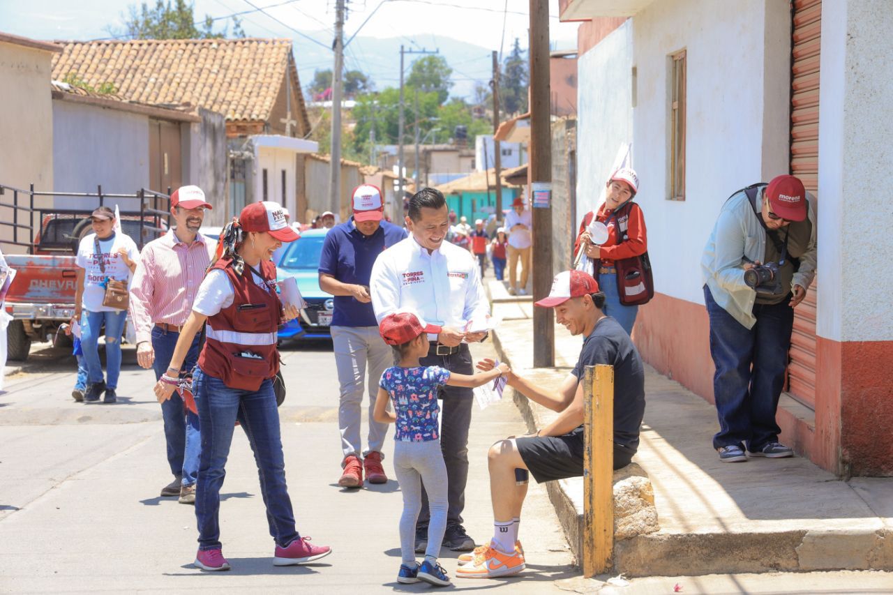 Morelia, Michoacán, a 28 de abril de 2024.- Las brigadas de Carlos Torres Piña, candidato a la presidencia de Morelia por la coalición Sigamos Haciendo Historia, inundaron de esperanza las calles de la tenencia de Tiripetío, donde decenas de vecinas y vecinos se dijeron dispuestos a acompañar la llegada de la 4T a la capital michoacana.