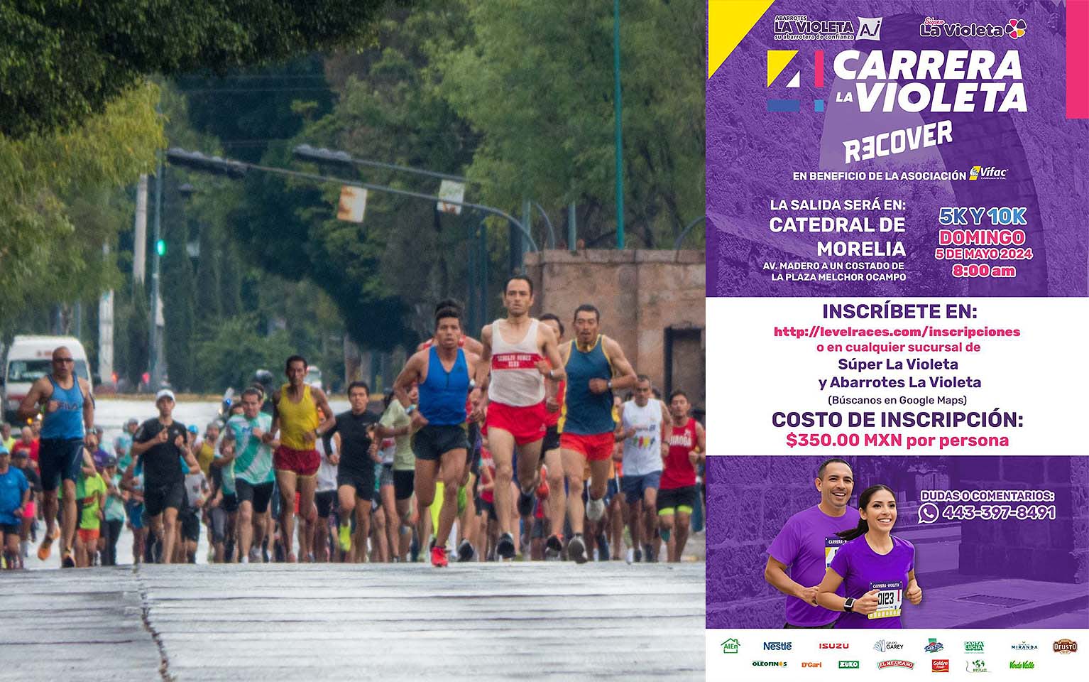 Morelia, Michoacán a 3 de mayo de 2024.- El domingo 5 de mayo cientos de familias se reunirán con una causa en común, apoyar a mujeres embarazadas en condiciones de vulnerabilidad. A través de su participación en la Cuarta Edición de la Carrera Atlética La Violeta se podrá ser parte de esta gran causa.
