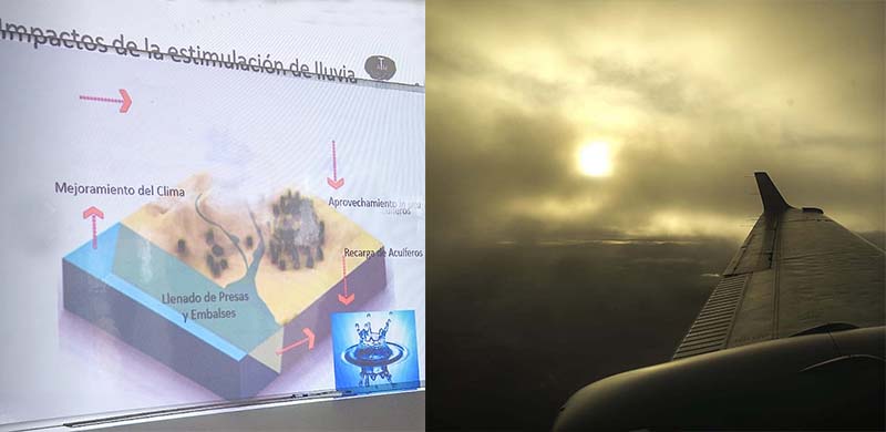 Una vez que esa fórmula es liberada, propicia que las gotas se unan, se condensen y se desate la precipitación pluvial; explicó que, de manera normal, de la humedad que contienen las nubes, el 3 por ciento es lo que cae en forma de lluvia, por lo que la aplicación del yoduro de plata hace que la condensación se incremente hasta un 5 o 6 por ciento.