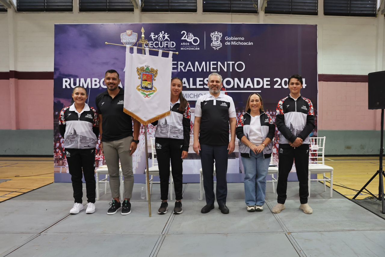 El gobernador realizó la entrega del estandarte del estado de Michoacán a Ashley Silva Ávila bicampeona nacional en voleibol de playa. Mientras que el escalador Luis Fernando Morales dio el juramento deportivo.