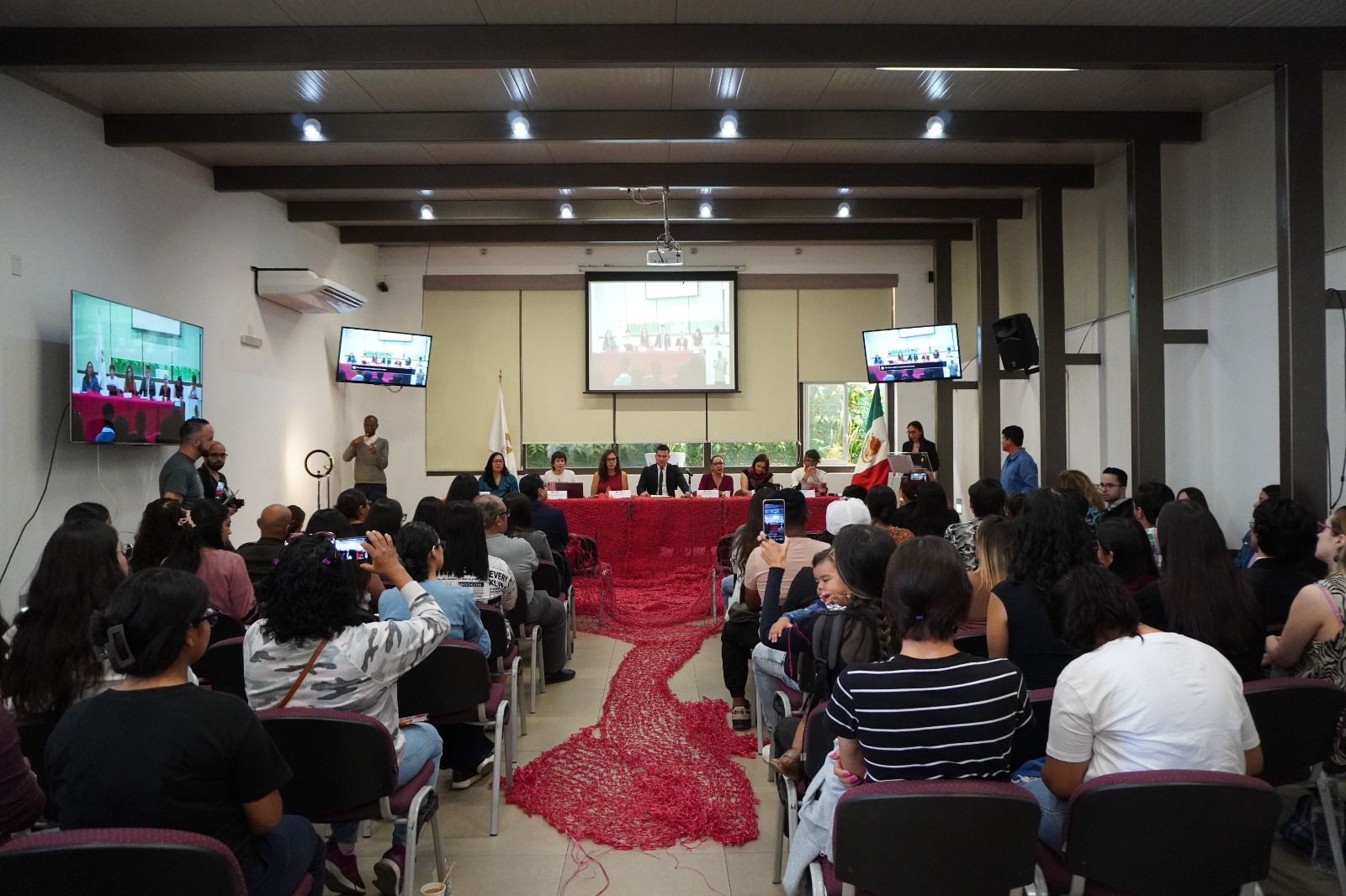 Estuvo presente el grupo de tejedoras de la Secretaría de Igualdad Sustantiva denominado Madeja, que ha adoptado el proyecto de “Tejer hasta encontrarlos” y que se encarga de la manufactura de la magna obra que será expuesta en el Palacio Clavijero en septiembre próximo.