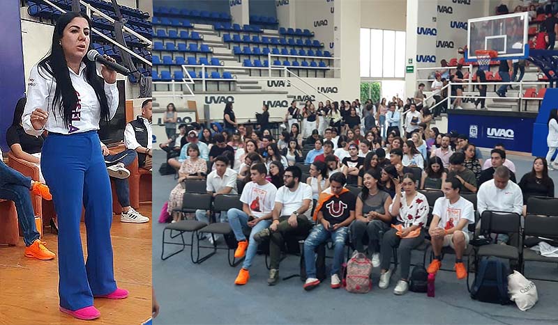 Estudiantes de la comunidad UVAQ, cuestionaron a la candidata respecto a sus propuestas para impulsar el deporte, la cultura, mejorar la seguridad, la salud y la educación.