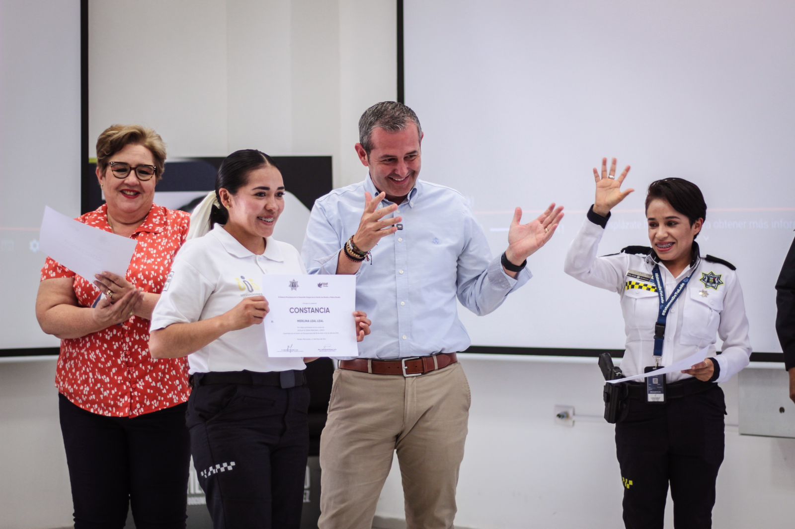 Morelia, Michoacán; 20 de mayo de 2024.-Policía Morelia celebró la entrega de certificados a Mediadores de Convivencia que concluyeron exitosamente el Taller de Lengua de Señas Mexicana, impartido por el DIF Morelia.