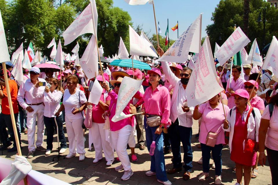 Adriana Hernández también estuvo presente en la marcha de la “Marea Rosa”, realizada ayer domingo 19 de mayo en el centro de Morelia; para levantar la voz en defensa de México, y para apoyar a la candidata presidencial Xóchitl Gálvez.