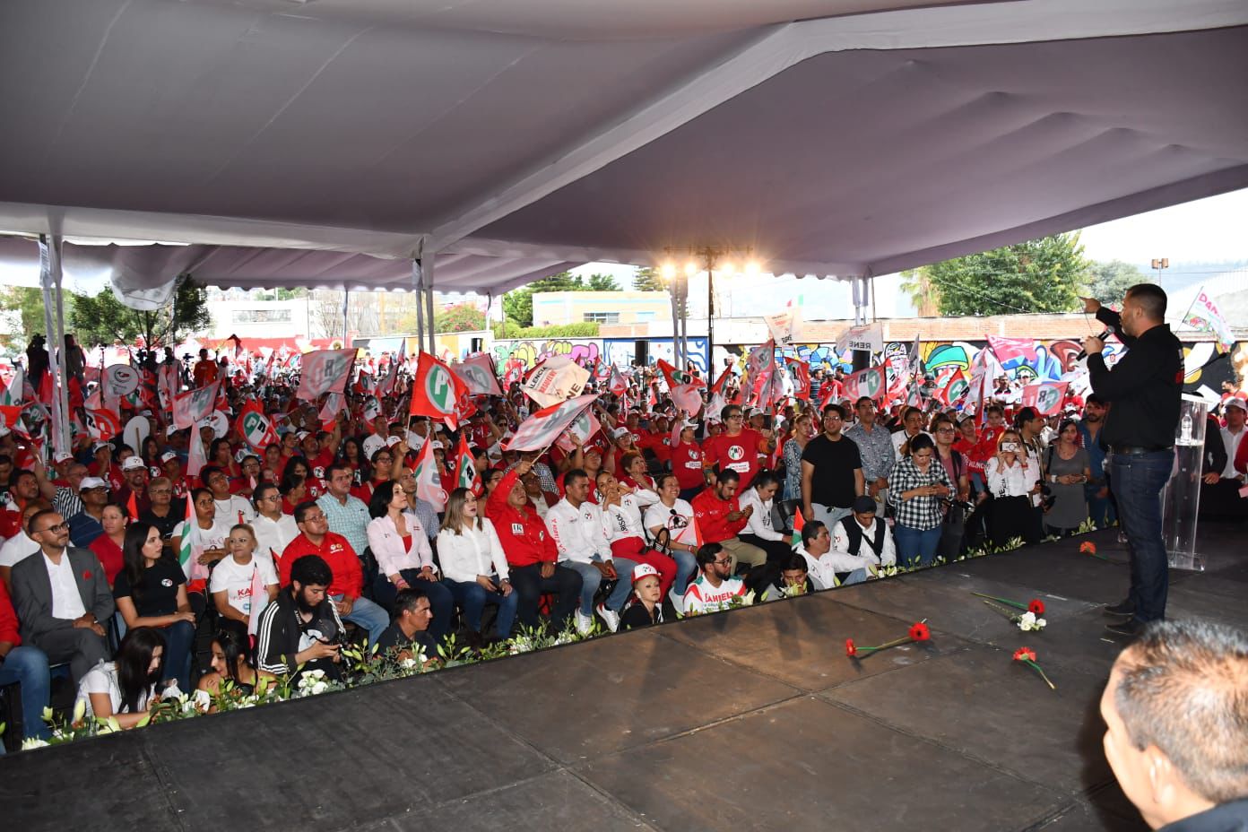 - Con Marisol Aguilar Aguilar, Yanitzi Palomo Calderón, Daniela de Los Santos y Jonathan Sanata González, como diputados locales vamos a resolver para Morelia; voten cinco veces PRI, pidió el candidato a la Presidencia Municipal.