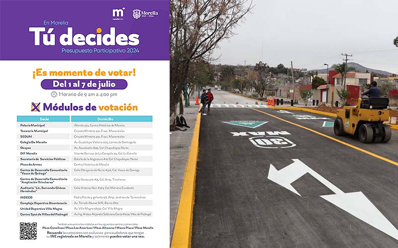 Para votar por la mejor propuesta, el Gobierno de Morelia establecerá módulos de votación física y la plataforma virtual https://presupuestoparticipativo.morelia.gob.mx/, para que todos y todas accedan fácilmente y elijan libremente la opción que más les interese.