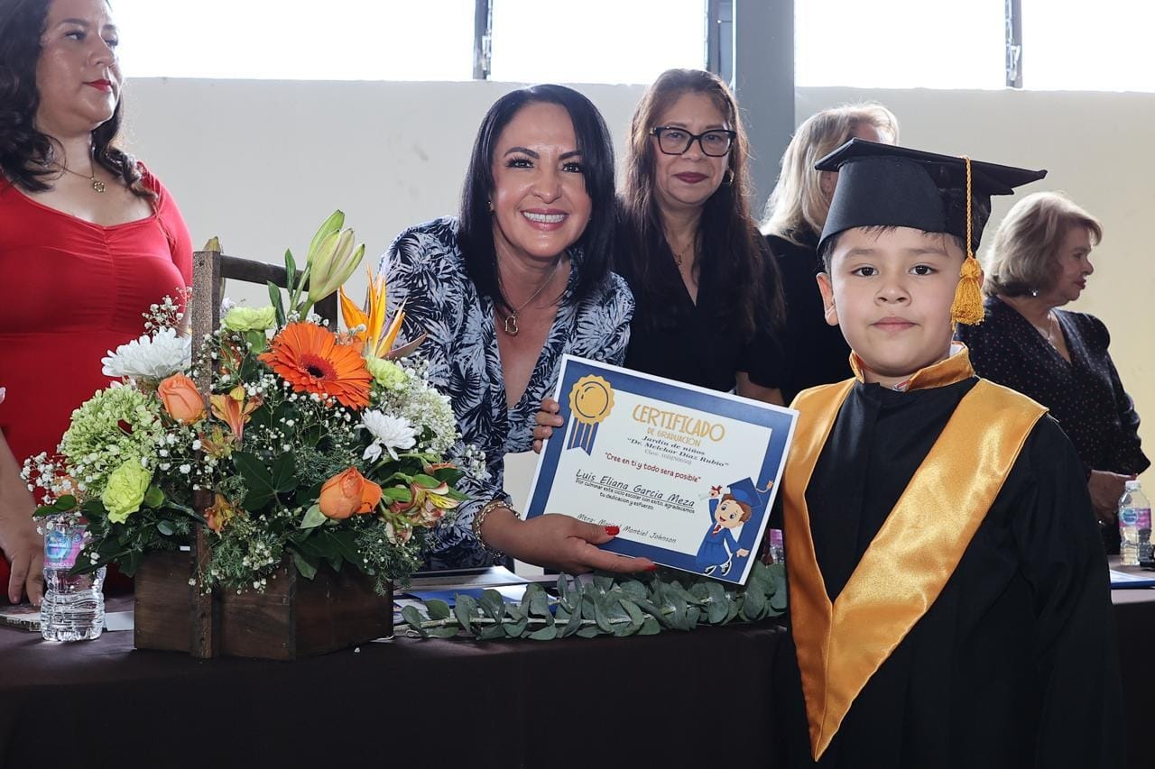 Al participar como la madrina de generación 2022-2024, del Jardín de Niños “Melchor Díaz Rubio”, manifestó “hoy 63 niños y niñas culminan una de las etapas más bonitas de su educación. Recuerden siempre que pueden ser lo que quieran ser, siempre y cuando trabajen duro y nunca dejen de soñar”.