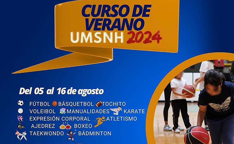 Morelia, Michoacán, a 13 de julio de 2024.- Con una serie de actividades deportivas, artísticas y culturales, la Universidad Michoacana de San Nicolás de Hidalgo se prepara para recibir durante este periodo vacacional a niñas, niños y adolescentes de 6 a 17 años en su Curso de Verano UMSNH 2024, que se organiza a través de la Secretaría de Difusión Cultural y Extensión Universitaria.