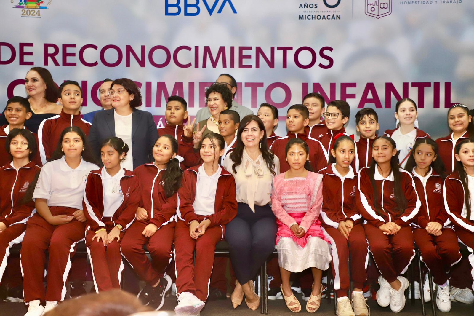 Morelia, Michoacán, 16 de julio de 2024.-Gracias a su excelencia educativa, 53 niñas y niños ganadores de la Olimpiada del Conocimiento Infantil 2024 recibieron su reconocimiento, computadora y más herramientas escolares por parte de la Secretaría de Educación del Estado (SEE), además de becas para continuar su formación en la secundaria, por parte de la Fundación BBVA.