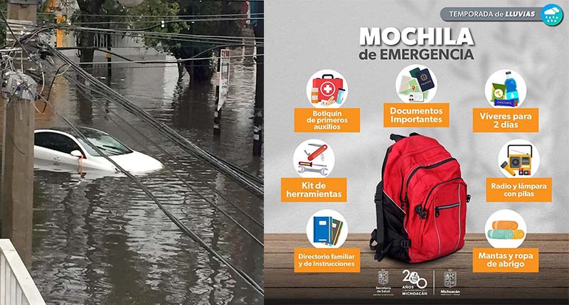 Morelia, Michoacán, 17 de julio de 2024.- Ante una emergencia sanitaria es conveniente tener preparada una mochila de emergencia, es por ello que la Secretaría de Salud de Michoacán (SSM) te explica cuáles son los objetos indispensables que debe contener, para ayudarte en las primeras horas después de un desastre por inundación, temblor o deslave.