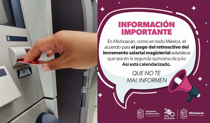 Morelia, Michoacán, 19 de julio de 2024.-La Secretaría de Educación del Estado (SEE) informa que el pago retroactivo del aumento al salario docente que anunció el presidente Andrés Manuel López Obrador, se entregará en la segunda quincena de julio.