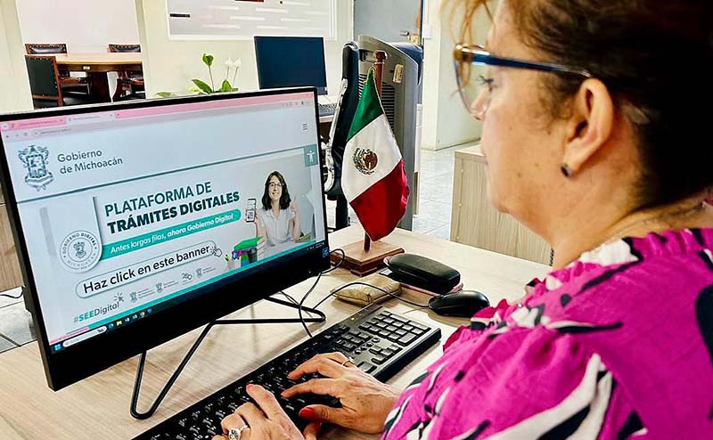 La secretaria de Educación, Gabriela Molina Aguilar, recordó que esta plataforma de Gobierno Digital en SEE se puede usar desde cualquier parte, siempre y cuando se tenga un dispositivo con conexión a internet, evitando traslados hasta las oficinas y las filas que parecían interminables; solo es necesario contar con la documentación digital en formato PDF.