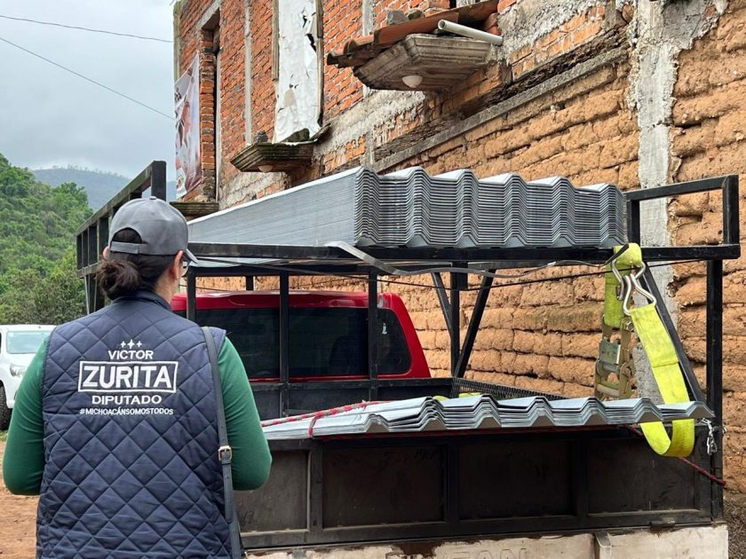 Morelia, Michoacán.-En apoyo a las familias morelianas, en esta temporada de lluvias, el diputado Víctor Zurita Ortiz continúa distribuyendo láminas a las familias, para que puedan reparar sus viviendas y con ello sigue, resolviendo las gestiones que la población le hizo.