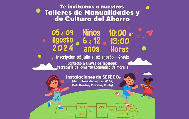 Morelia, Michoacán; 1 de agosto del 2024.-El curso de Verano Creativo que ofrece la Secretaría de Fomento Económico (SEFECO) contará con taller de manualidades y cultura financiera para niños de 6 a 12 años.