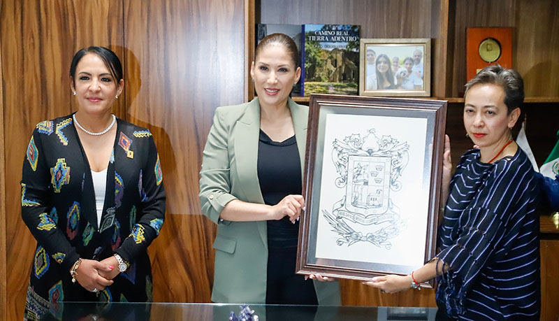 Morelia, Michoacán, a 01 de agosto del 2024.- La diputada Ivonne Pantoja Abascal, presidenta de la Mesa Directiva del Congreso del Estado, recibió este día una réplica del Escudo Nacional Mexicano, elaborada por el artista michoacano Agustín Cárdenas.