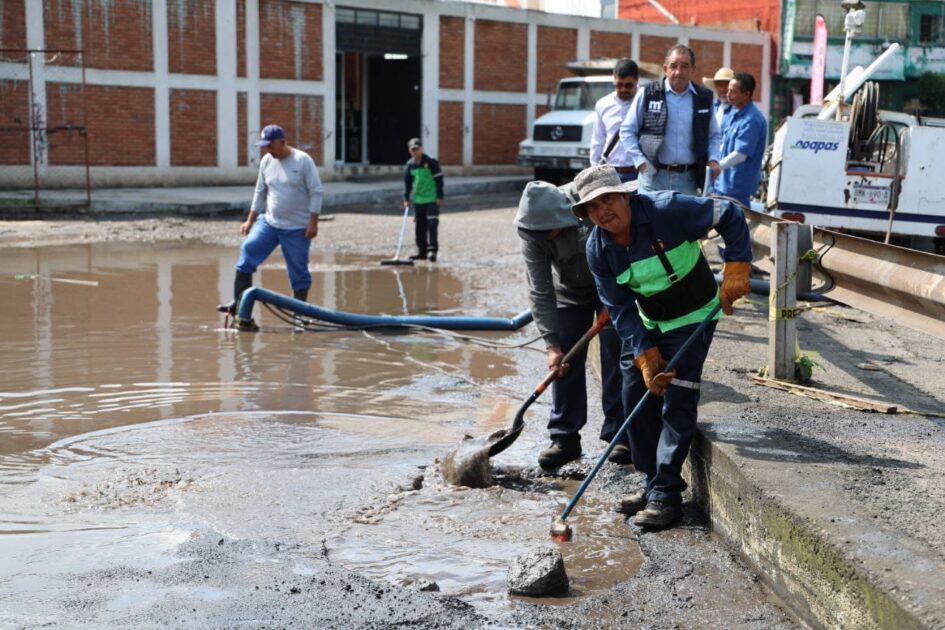 Posteriormente, Alfonso Martínez se trasladó a la calle Estefanía Fonseca, frente al Estadio Morelos, para supervisar las acciones de dragados por parte del Organismo Operador de Agua Potable, Alcantarillado y Saneamiento de Morelia, así como del bacheo de la Secretaría de Obras Públicas.