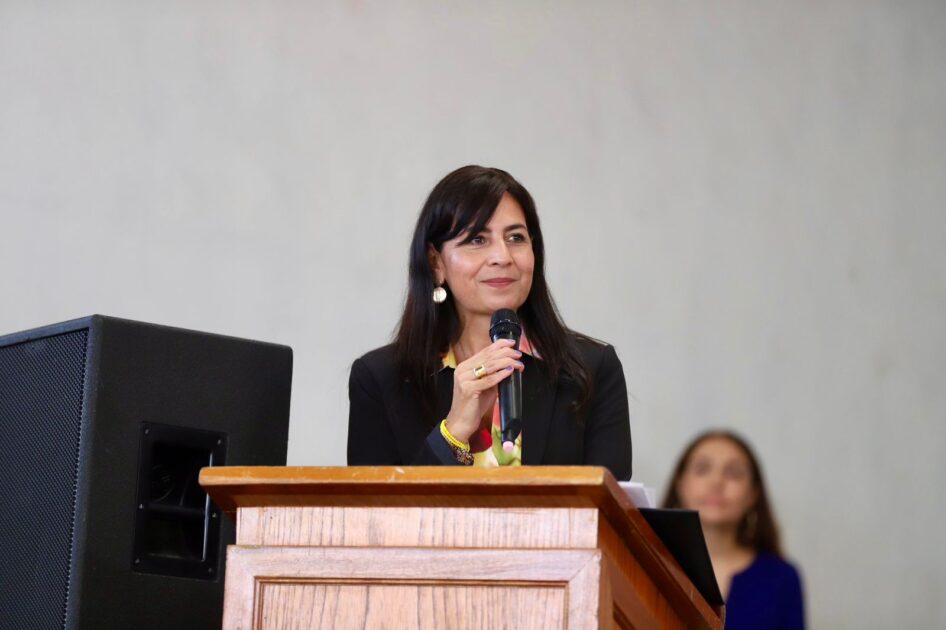 En la ceremonia de inicio de ciclo en la Prefeco Melchor Ocampo, Gabriela Molina atestiguó la toma de protesta de Norma Lorena Gaona Farías como nueva directora, a quien felicitó y refrendó el apoyo, tras destacar que es la primera mujer que dirige este plantel en sus más de 60 años de historia.