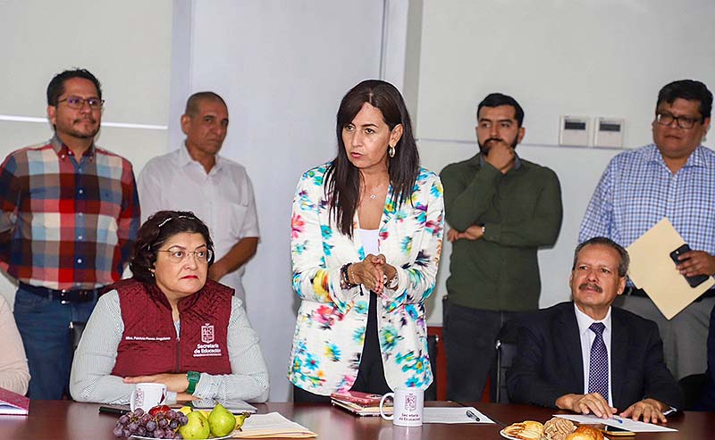 “Nos estamos coordinando para respaldar el arranque de las labores del ciclo 2024-2025, nos da mucho gusto ver el compromiso de miles de maestras y maestros en todas las regiones de la entidad”, señaló la secretaria de Educación, Gabriela Molina Aguilar, al encabezar una de las reuniones sobre este tema.